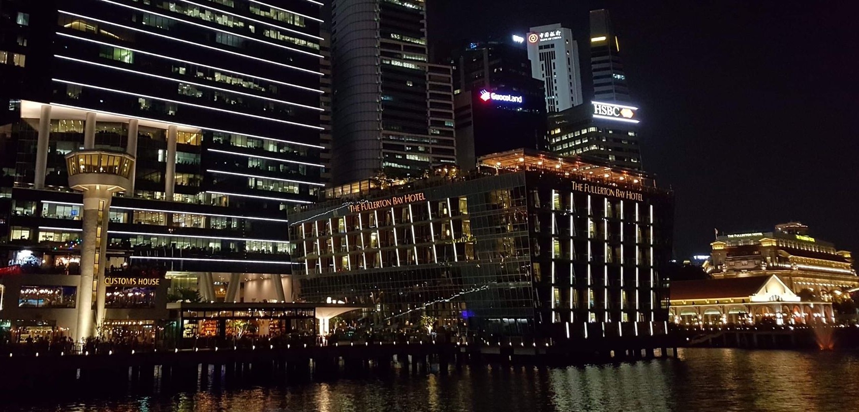 Il fut un temps, où la baie était le poumon de Singapour, l’embouchure du fleuve du même nom qui traverse la ville de part en part, lieu d’établissement des premiers commerces et bâtiments publics d’envergure. Si cette baie a été agrandie avec une Marina artificielle il y a quelques années, et que le lieu est surtout connu pour son Downtown futuriste (le Central Business District), l’hôtel Marina Bay Sands et les gigantesques Gardens by the Bay, il subsiste tout un pan historique qui borde le fronton, appelé Fullerton Heritage Preccinct. On y trouve le Fullerton Hotel, ancien bureau de poste et haut lieu politique de la ville depuis les années 1920, One Fullerton, un espace de restauration en bord de quaie, la célèbre statue du Merlion (symbole de la ville), le Fullerton Waterboat House, l’ancien bureau des douanes, et donc le Fullerton Bay hotel, un ancien pier sur l’eau reconverti en hôtel 5 étoiles.