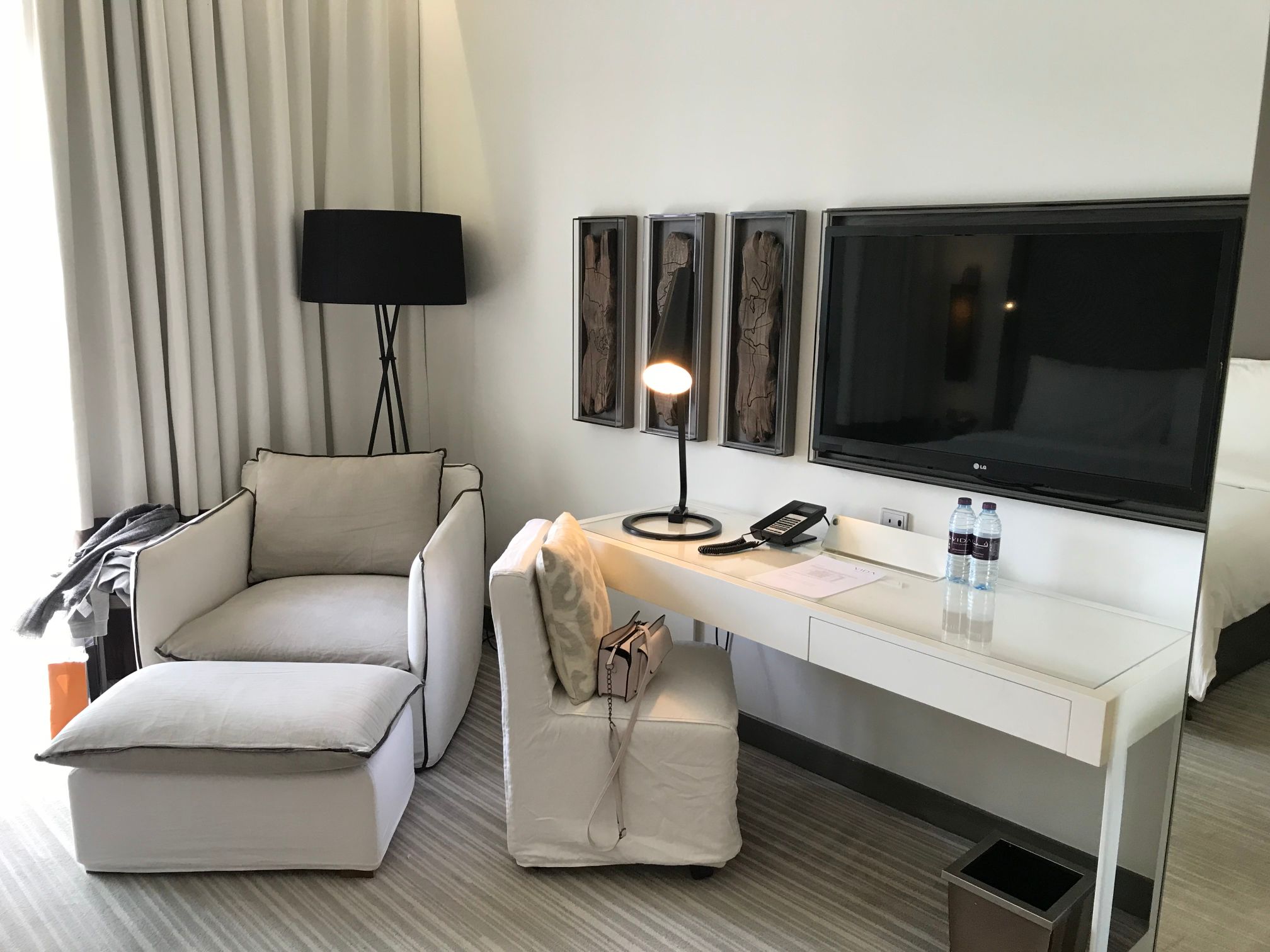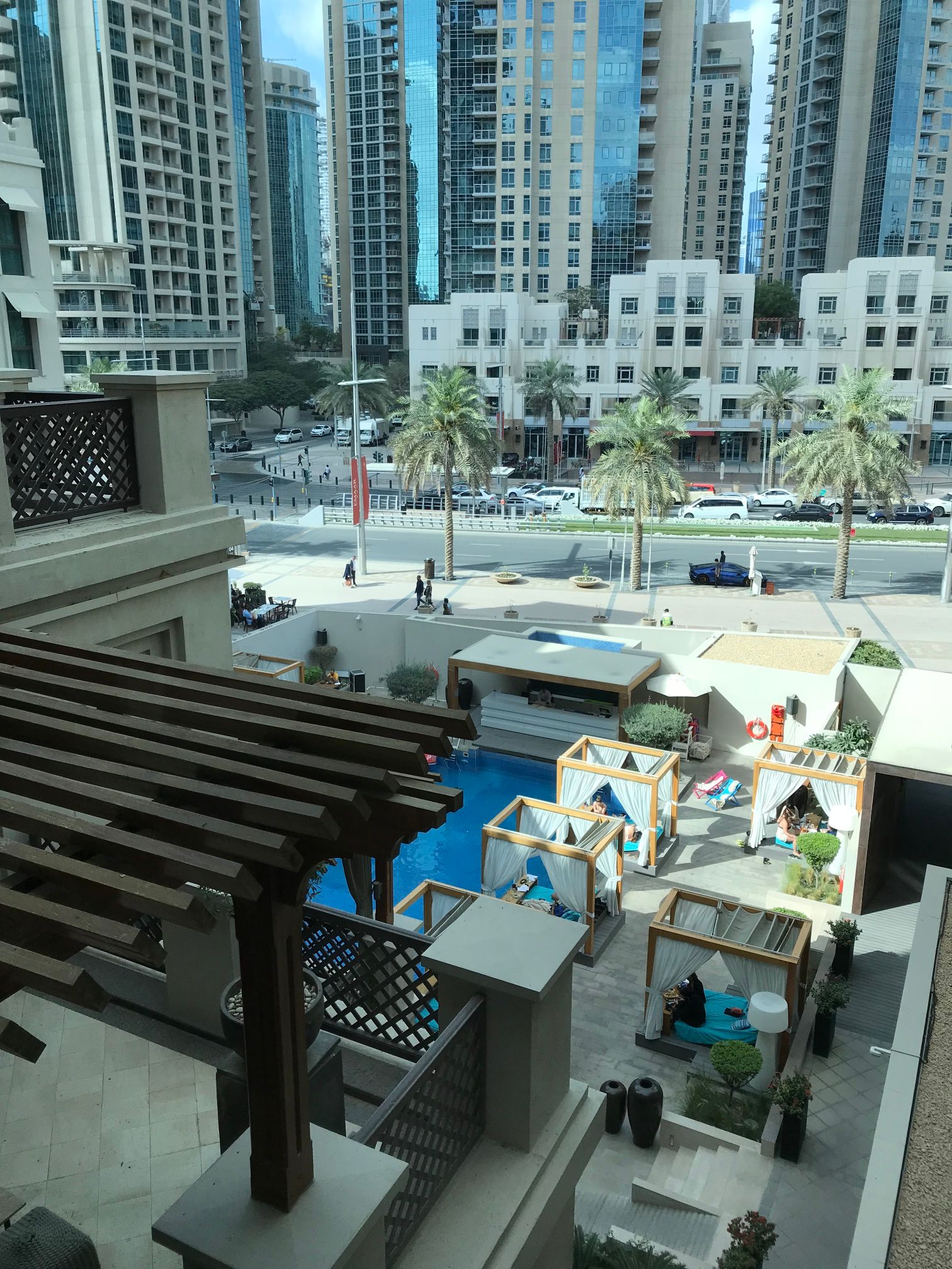 Nous avions un petit balcon avec une jolie vue sur les buildings avoisinants, néanmoins il n’existe pas de vue direct sur Burj Khalifa comme c’est le cas au Manzil. Vous pouvez aussi choisir une vue piscine (et boulevard en même temps) ou sur des jardins intérieurs.
