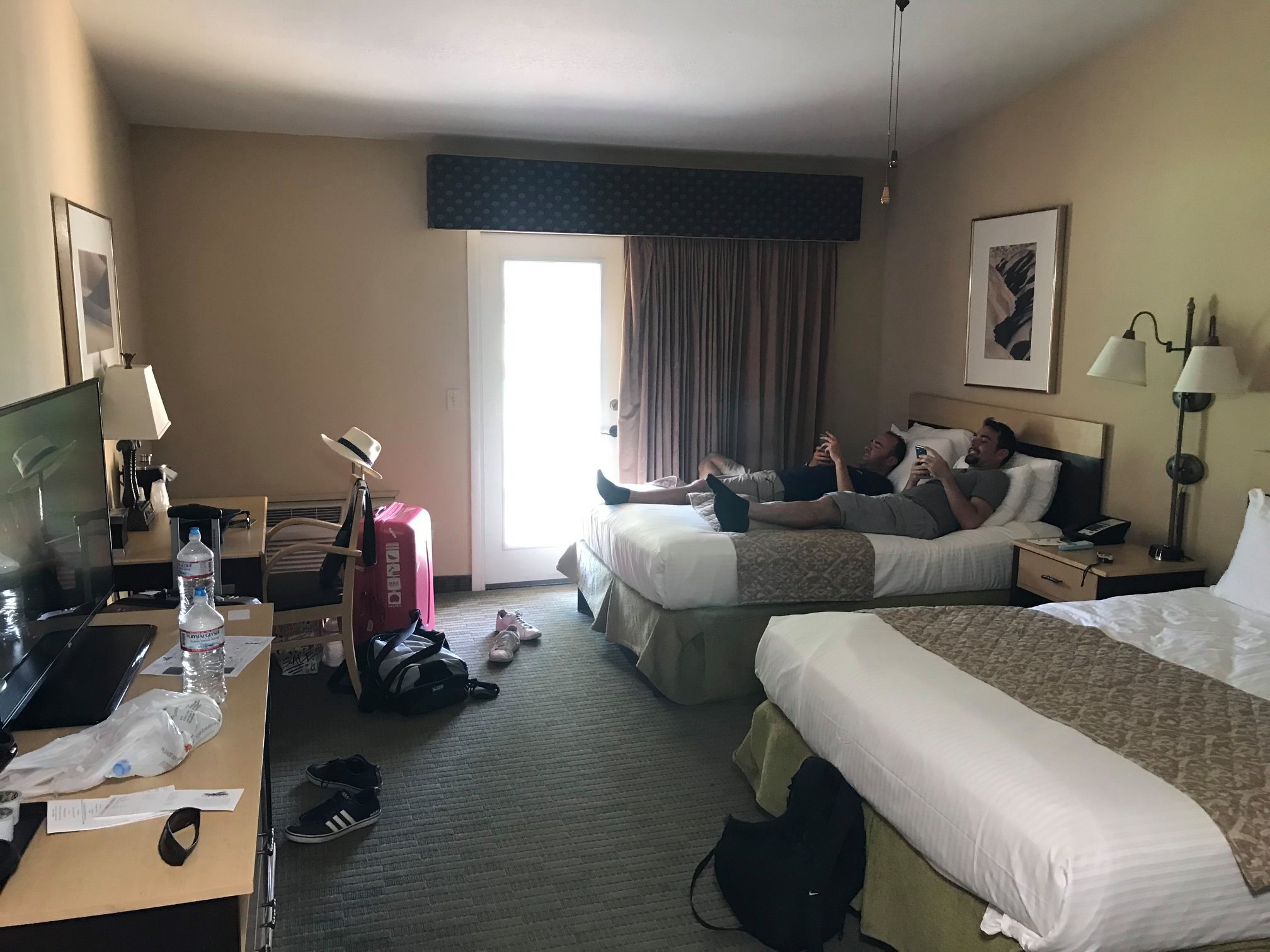 Comme son nom l’indique, il s’agit d’un véritable ranch. Ici, les bâtiments ne font pas plus d’un étage, les chambres sont réparties dans deux ou trois lodges et chaque fenêtre donne directement sur une petite terrasse avec rocking chair, et de grandes étendues de pelouses avec les montagnes au loin. On se gare directement devant sa chambre, et on peut alors rejoindre à pied le reste du complexe.