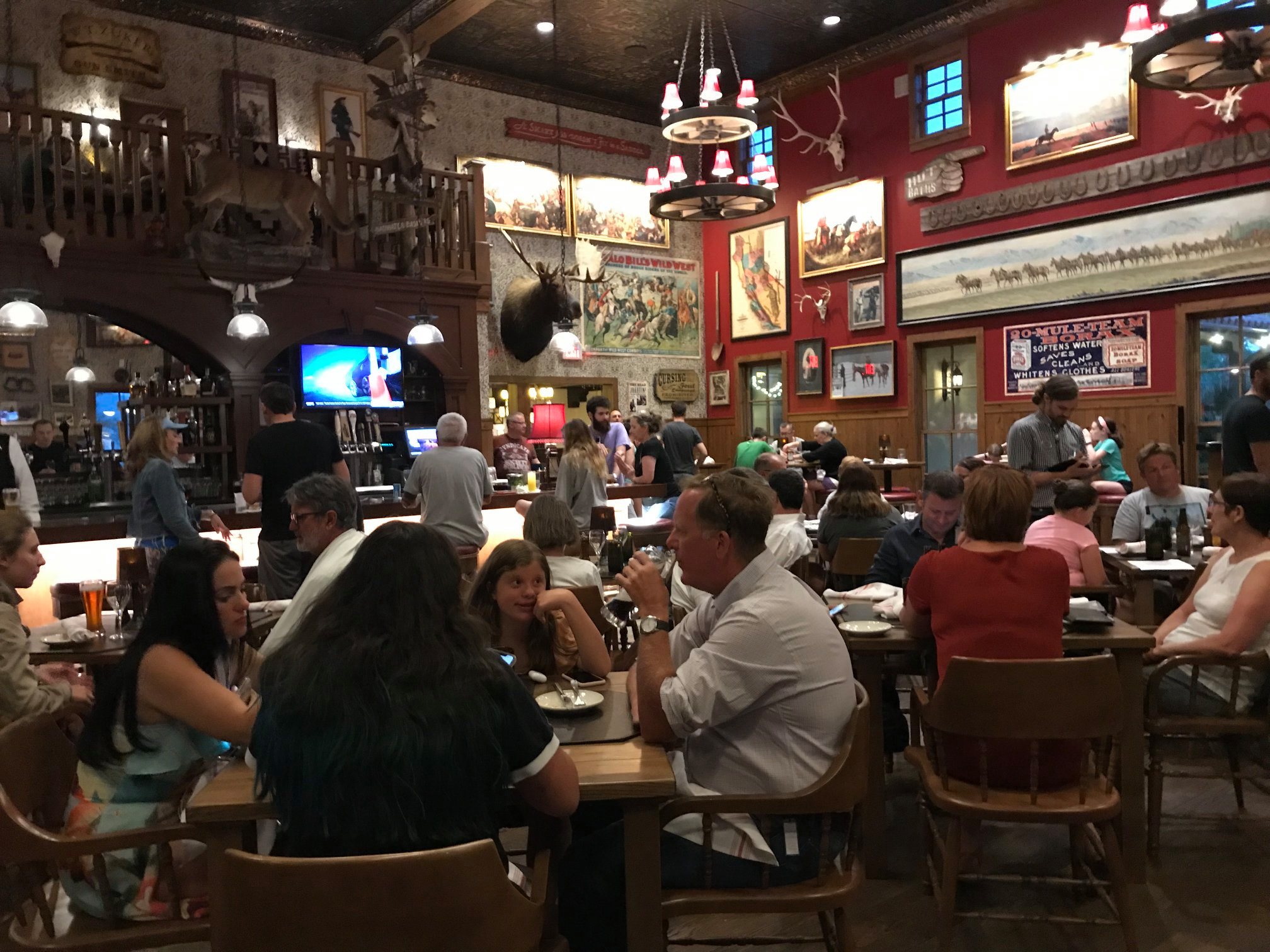 L’hôtel dispose aussi d’un restaurant principal de type saloon, très joliment décoré et avec une bonne ambiance car il est souvent plein le soir. Pour les petites faims ou les propositions alternatives, il y a un très petit fast food proposant de la nourriture à emporter (pizzas, hot dogs…) ainsi que des glaces et milkshakes. Il y a aussi un restaurant de type buffet pour le petit déjeuner. Pour finir, une grande boutique avec des souvenirs fait aussi office d’épicerie avec tout ce qu’il faut pour manger sur le pouce et grignoter.