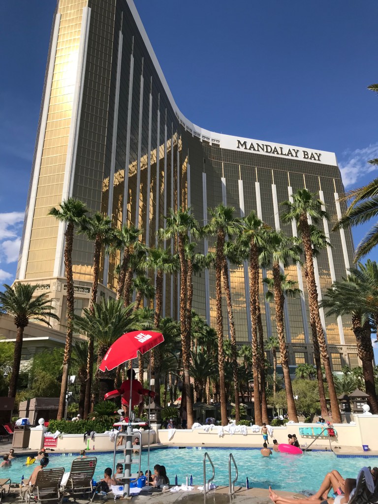 Bien que Las Vegas propose pléthore d’hôtels en tout genre le long de son strip et dans le vieux Downtown, le Mandalay Bay est sûrement l’un des plus connus et iconiques. Qu’il s’agisse de sa façade contemporaine toute en vitres peintes à la feuille d’or, de son apparition fréquente dans la série Las Vegas (tournée dans les intérieurs de l’hôtel), ou de la triste tragédie du tireur isolé fin 2017, vous en avez forcément entendu parlé ou, avez certainement vu une photo. Mais derrière les paillettes, qu’en est-il de l’expérience ?