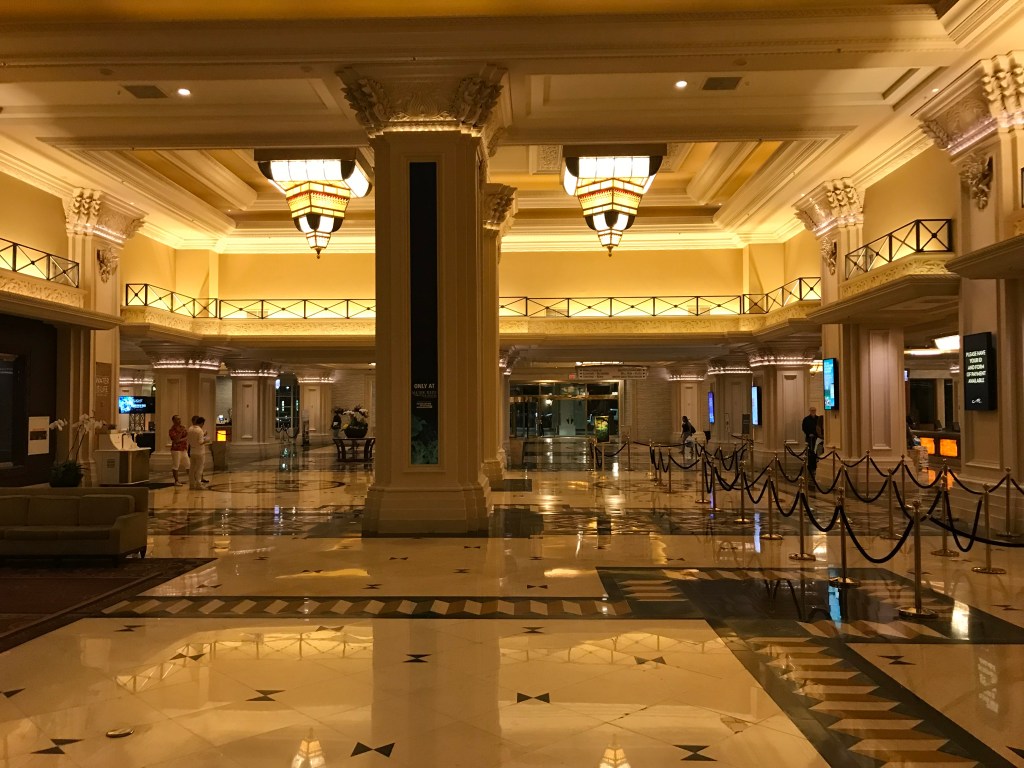 Maintenant, l’emplacement a-t-il réellement une importance à Las Vegas ? Vu la chaleur, les touristes privilégient souvent les déplacements courts, d’un point A à un point B, et n’hésitent pas à se véhiculer. L’hôtel propose également pléthore d’activités pour ne jamais avoir à sortir de l’établissement… on pourrait facilement y passer le weekend sans aller voir ailleurs. Ceci étant dit, pour le touriste « de base », je pense néanmoins qu’il est plus intéressant de loger vers le milieu du strip (grosso modo autour du Bellagio) pour être à équidistance de tout.