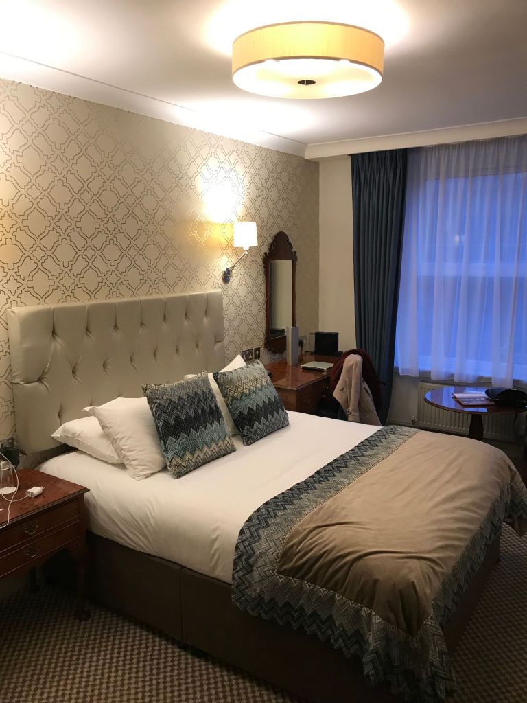 Bien que restant assez petites (18 m²), les chambres sont de taille appréciable pour l’Angeleterre (on parle bien sûr des chambres standards, car il y a aussi des chambres deluxe ou des suites). Elles ont été récemment rénovées et sont très élégantes avec une décoration d’époque teintée de lignes plus modernes, avec un confort adéquat et une très bonne literie. Certaines donnent directement sur la mer, tandis que d’autres peuvent donner sur des rues adjacentes ou des petites cours. Nous avons apprécié le thé et les petits shortbreads offerts dans la chambre, ainsi que la présence de ports USB.