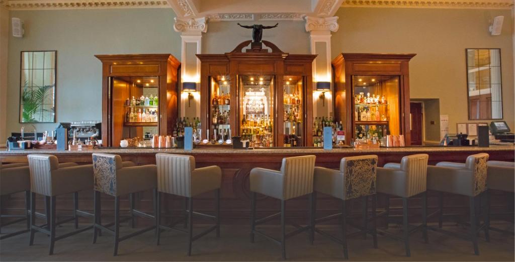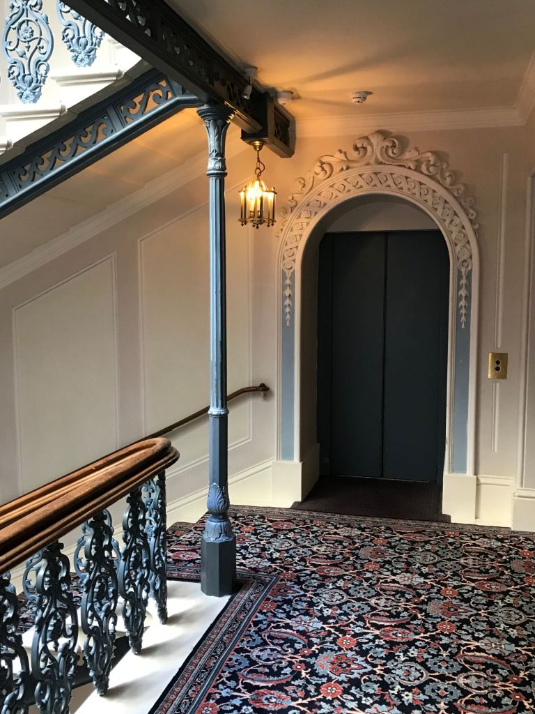 Le visiteur ne peut qu’être frappé par la beauté de l’escalier central majestueux, et le charme des parties communes, depuis les ascenseurs (les premiers d’Angeleterre en dehors de Londres), les toilettes du lobby, les paliers d’étage, les couloirs (qui couinent un peu, le poids des années…), la porte cochère ou le bar donnant sur le lobby. On se croirait quelque peu sur un luxueux paquebot d’antan.