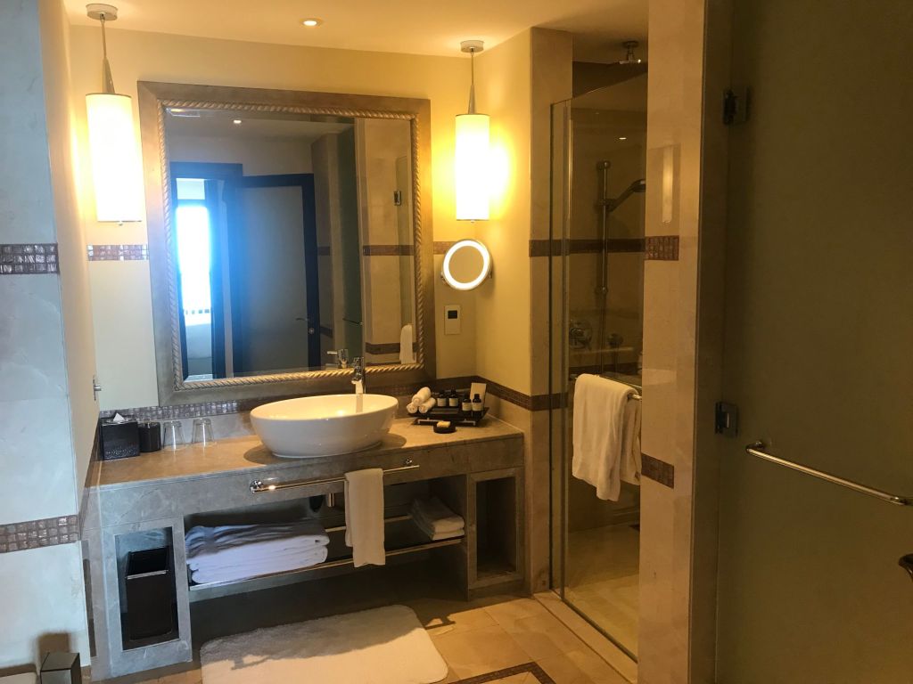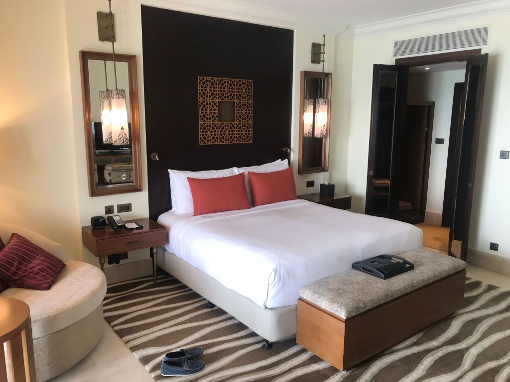 A l’image de l’hôtel, les chambres se veulent confortables, spacieuses, modernes mais fidèles à l’héritage arabe. Un immense lit trône au milieu de la pièce, et la salle de bain attenante propose douche à l’italienne, baignoire et WC séparés. Nous avons trouvé l’ensemble très confortable et très bien entretenu.