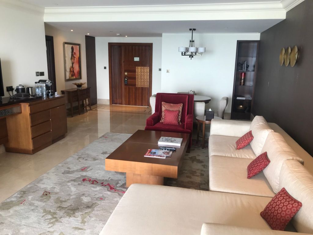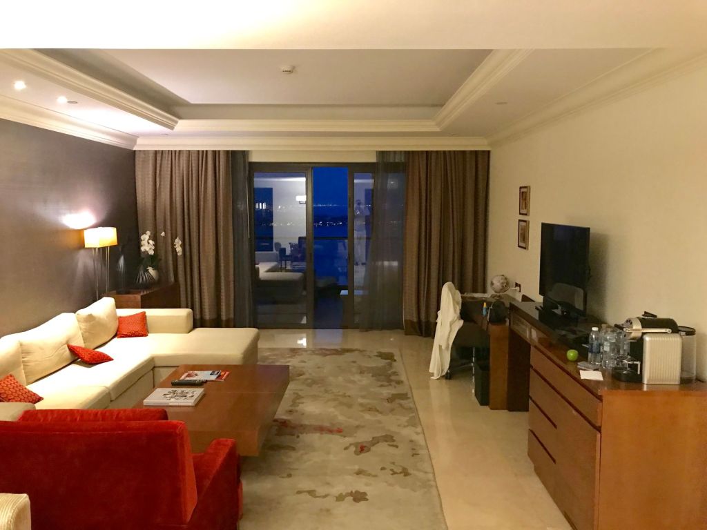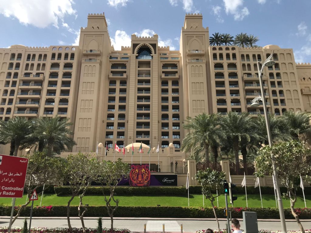 Il y a deux hôtels Fairmont à Dubai, celui qui nous intéresse aujourd’hui est situé sur le « tronc » de l’ile artificielle Palm Jumeirah. On sait que les hôtels de Palm Jumeirah sont assez excentrés mais le Fairmont est lui assez proche du réseau routier principal.