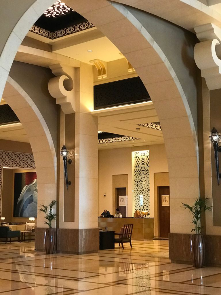 Au premier abord, le Fairmont (qui a pignon sur rue) est assez monobloc. Heureusement, l’architecture arabe et les tons ocre lui donnent l’allure d’un palais plus que d’une barre d’immeuble passe-partout.
