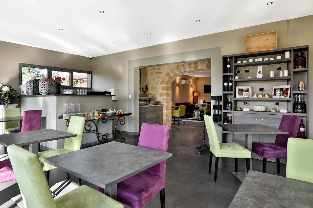 L’hôtel dispose d’une salle de restauration, où le petit déjeuner est servi chaque jour au prix de 13€. Il faut le confirmer à l’avance ou lors de votre arrivée à l’hôtel car ici, on ne gaspille pas ! Vous pouvez manger à l’intérieur mais en cas de beau temps, les baies vitrées sont grandes ouvertes et on peut manger en terrasse avec vue sur la piscine.