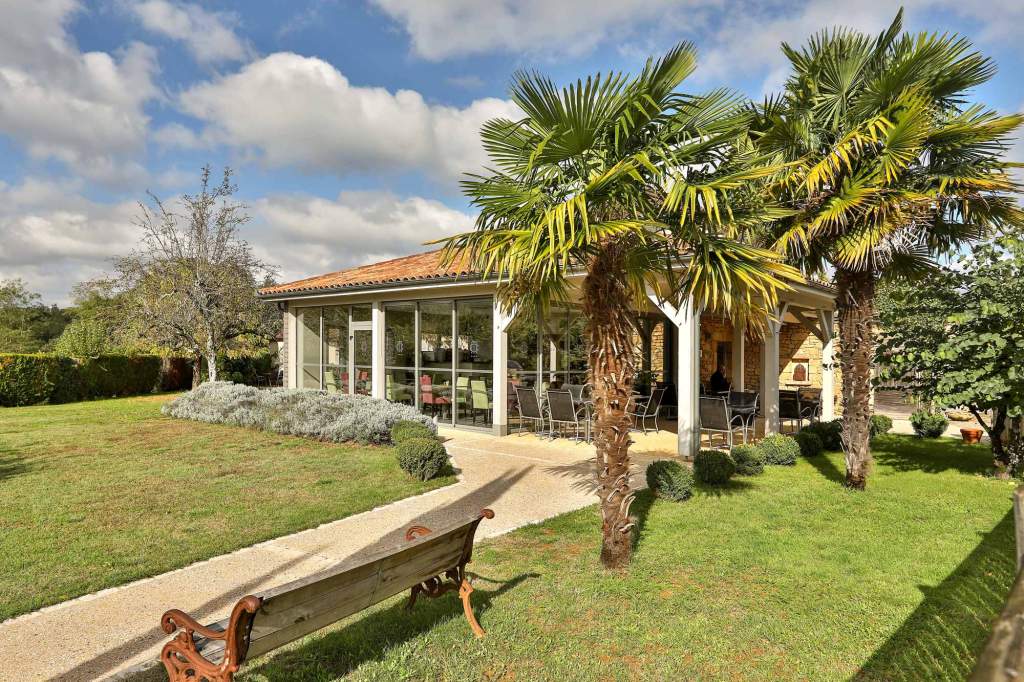 Le Mas représente un havre de paix avec sa piscine chauffée, son architecture en pierre typique de la région et ses grands jardins vallonées parsemés d’arbres fruitiers, de bancs d’époque, transats et petits fauteuils, idéals pour se poser au crépuscule, grignoter un morceau ou se laisser aller à la promenade et la rêverie.