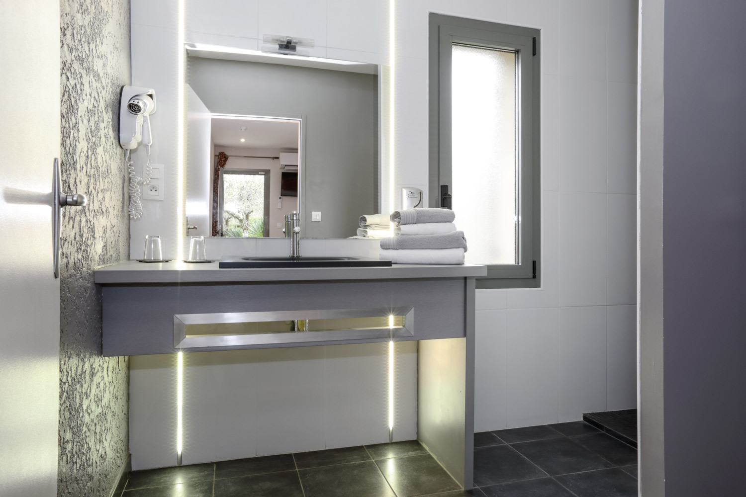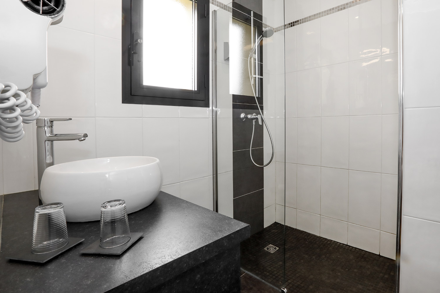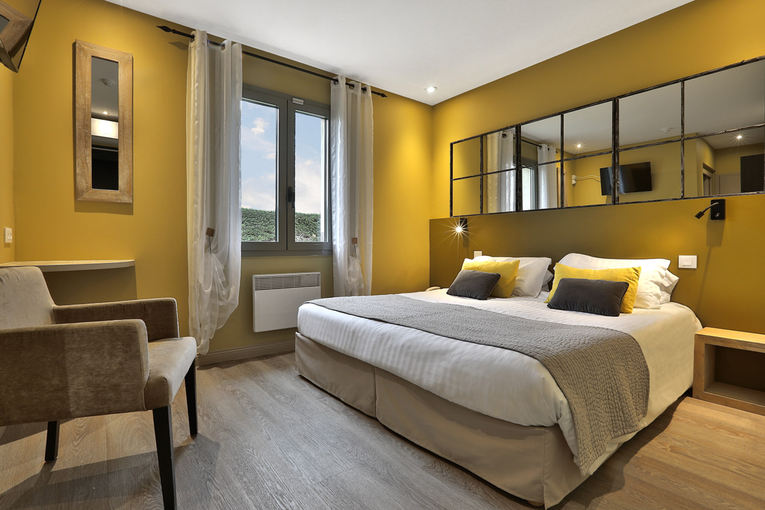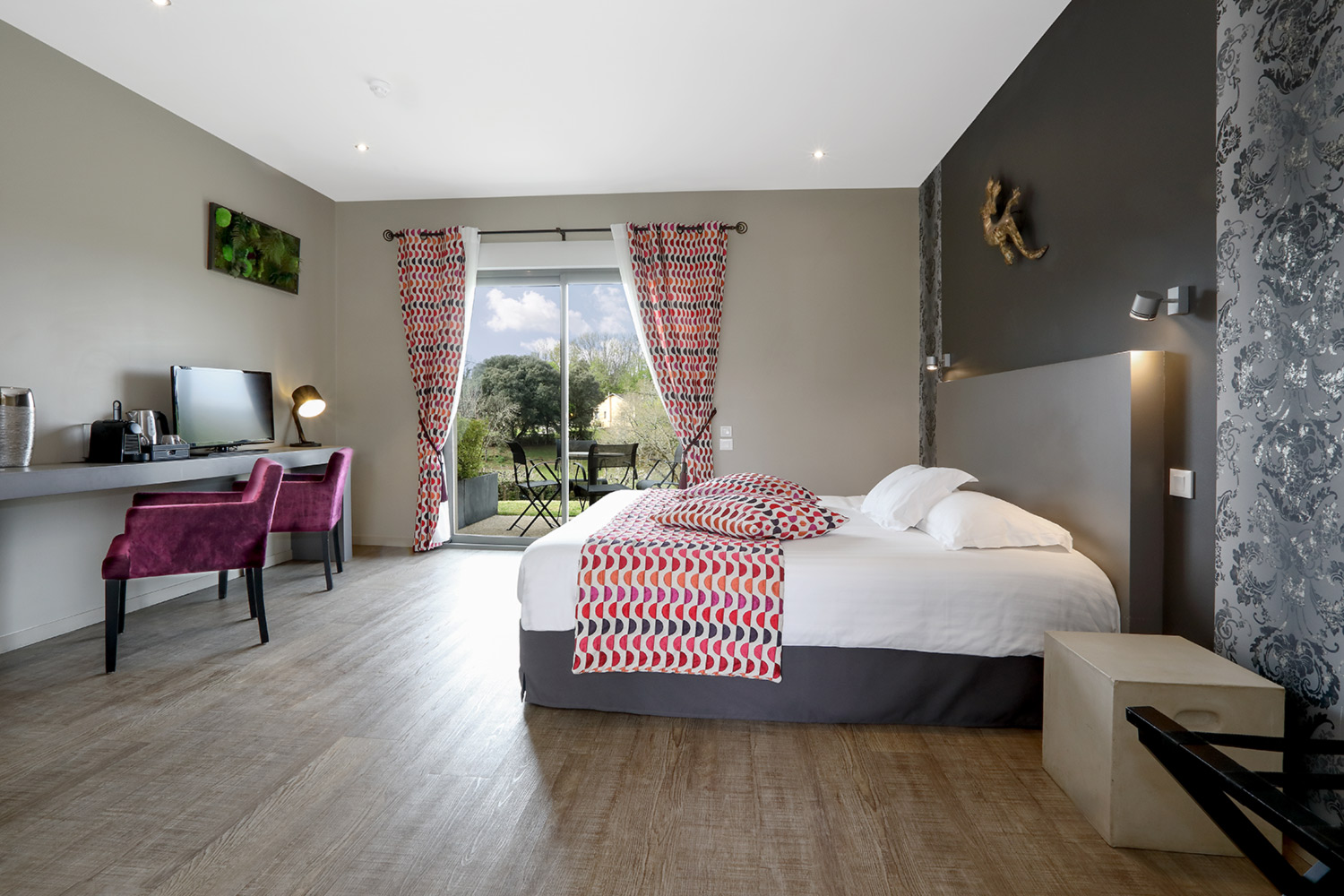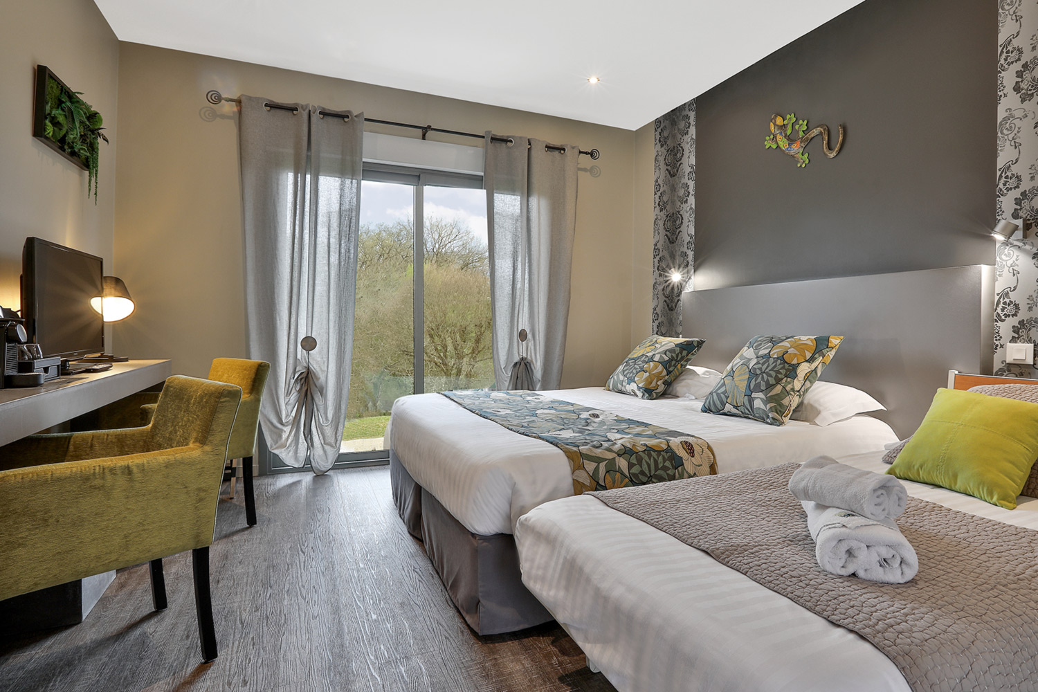 La décoration unique à chaque chambre, refaite en 2021 dans tout l’hôtel, se veut contemporaine en conservant le charme initial de la demeure, de style « campagne-chic » (boiseries…). Le ménage est fait tous les jours et il y a du Wi-Fi, même si nous ne l’avons pas trouvé très puissant, préférant souvent surfer en 4G (aucun problème de connexion). A partir des chambres supérieures, vous bénéficiez d’un petit service de café et thé en chambre, ou même d’une machine Nespresso en Premium, qui ont aussi une terrasse privative.
