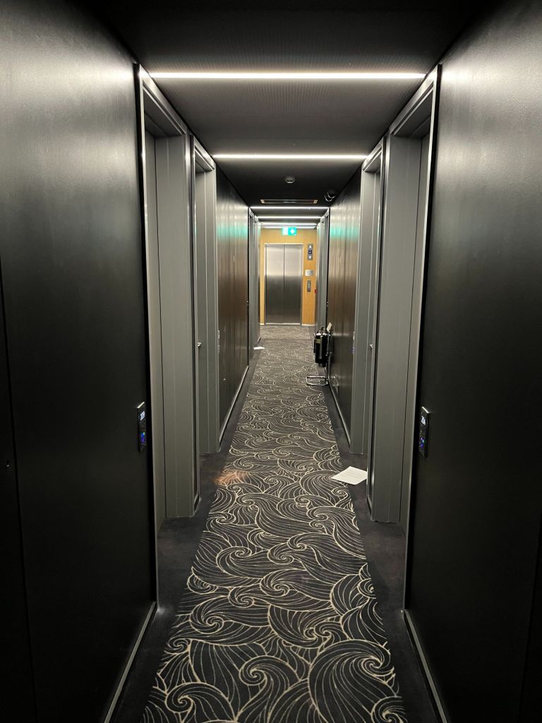 Bon soyons honnêtes, d’extérieur l’hôtel est totalement passe-partout (voir moche), l’entrée est assez discrète dans une ruelle perpendiculaire au Strand. Les intérieurs tels que le hall sont assez exigus également (fun fact : pour aller aux toilettes si vos chambres ne sont pas prêtes, vous devrez prendre l’ascenceur pour monter au 3è étage et vous perdre quelque peu dans les couloirs). On comprend assez rapidement qu’il s’agit en fait d’un vieil immeuble récemment racheté et transformé en apparts-hôtel. Si les couloirs n’ont rien de folichon, le petit hall d’accueil a été néanmoins entièrement redécoré et reste accueillant, et il en va de même pour les chambres.
