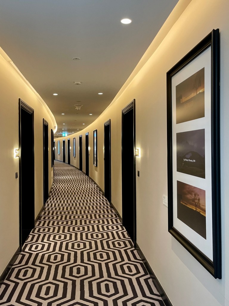 D’extérieur l’hôtel ne paye pas de mine, avec une façade incurvée contemporaine mais qui ne crie pas forcément « Hollywood » comme le Universal Studios Grand Hotel à Beijing ou le Studio City de Macao.