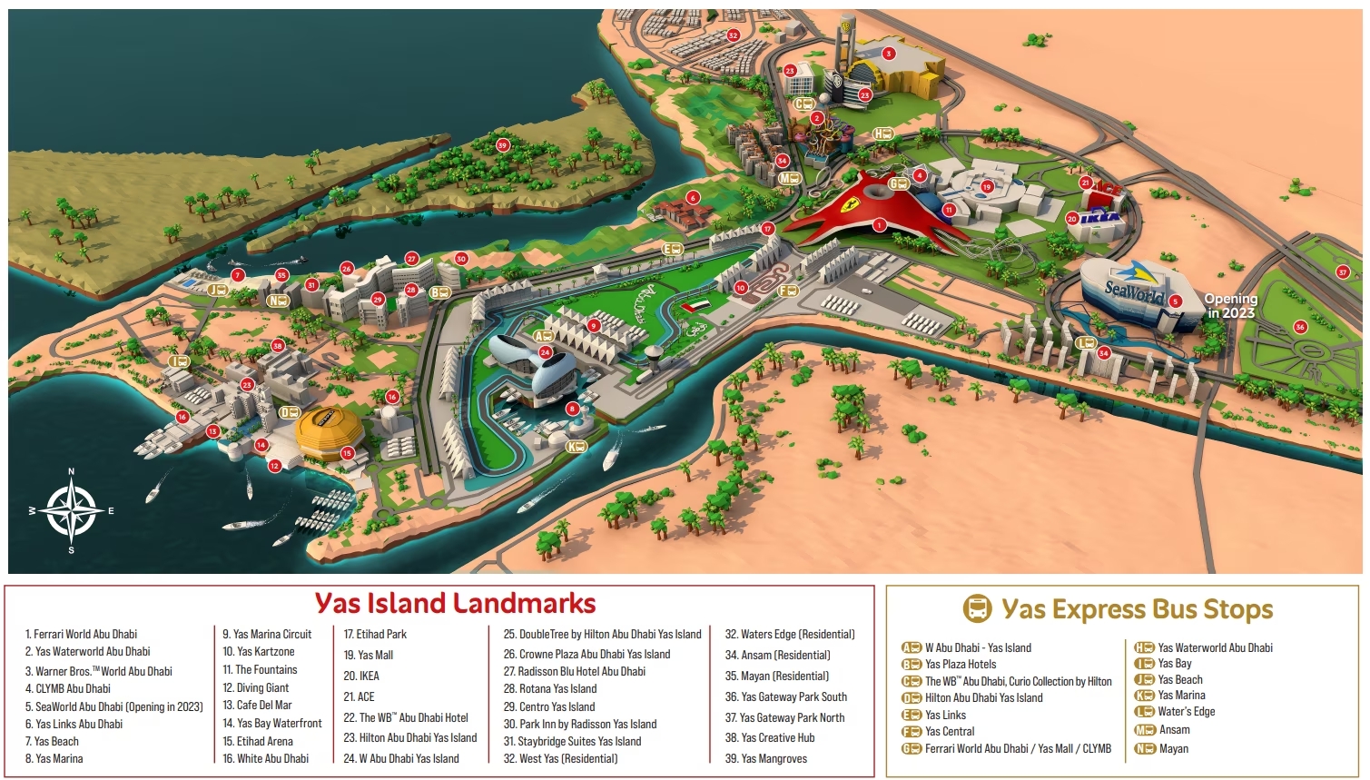 Situé à Yas Island (l’île d’Abu Dhabi dédiée aux divertissements en tout genre), l’hôtel est idéalement placé pour quiconque est en recherche de sensations fortes, détente et divertissement à portée de main. L’hôtel est situé juste en face du parc Warner Bros World, soit une centaine de mètres à pied. De fait, il est également à proximité de Ferrari World, du parc aquatique Yas Waterworld et du tout nouveau parc Sea World Abu Dhabi qui composent le resort, sans oublier le centre commercial Yas Mall qui relie le tout avec ses nombreuses boutiques et restaurants. Mais Yas Island comporte aussi des plages, une zone de restauration en bord de mer (Yas Bay), un circuit de Formule 1, et une arena pour des concerts et autres grands spectacles, en plus de pas mal d’hôtels pour tous les budgets. Bref, The WB Abu Dhabi peut être un bon point de chute si vous êtes avant tout attirés par les parcs à thèmes, avec l’envie pourquoi pas de vous échapper une journée sur le reste d’Abu Dhabi, et sans forcément passer par Dubai (situé à environ 1h00 en voiture).